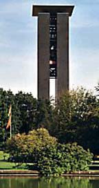 Das Carillon: ein großes Konzertglockenspiel in einem schwarzen Turm neben dem Haus der Kulturen der Welt. Mit 68 Glocken und 48 Tonnen Gewicht ist es eins der größten Carillons der Welt.